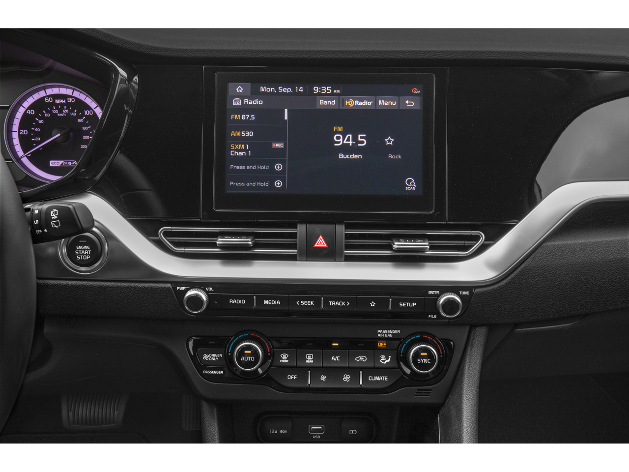 - Radio: AM/FM/HD/SiriusXM Audio System -inc: 8" display audio 2.0 V w/embedded modem, UVO link w/Android Auto & Apple CarPlay smartphone integration, 6-speaker audio system w/auxiliary USB input, Bluetooth® wireless connectivity w/voice recognition, steering wheel mounted audio controls, 4.2" supervision meter cluster, TFT color LCD w/rheostat, 1 front 12V power outlet and 1 front USB charger