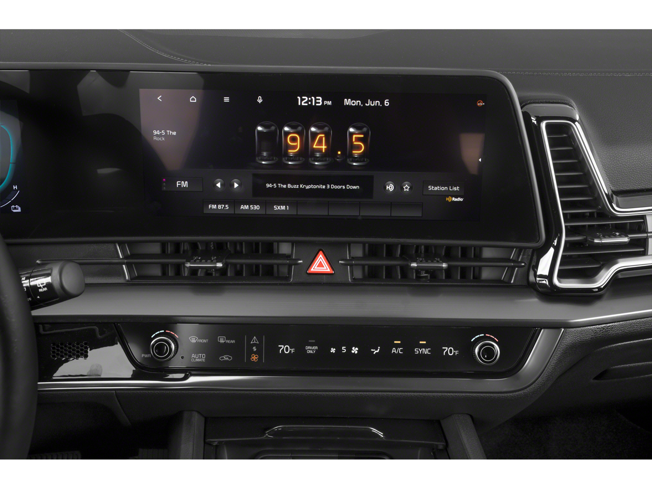 - Radio: AM/FM/HD Audio System -inc: 12.3" touchscreen w/navigation, 6 speakers, wired Apple Carplay and Android Auto, Kia Connect, voice recognition, OTA map updates, USB, satellite radio and Bluetooth® phone and streaming audio